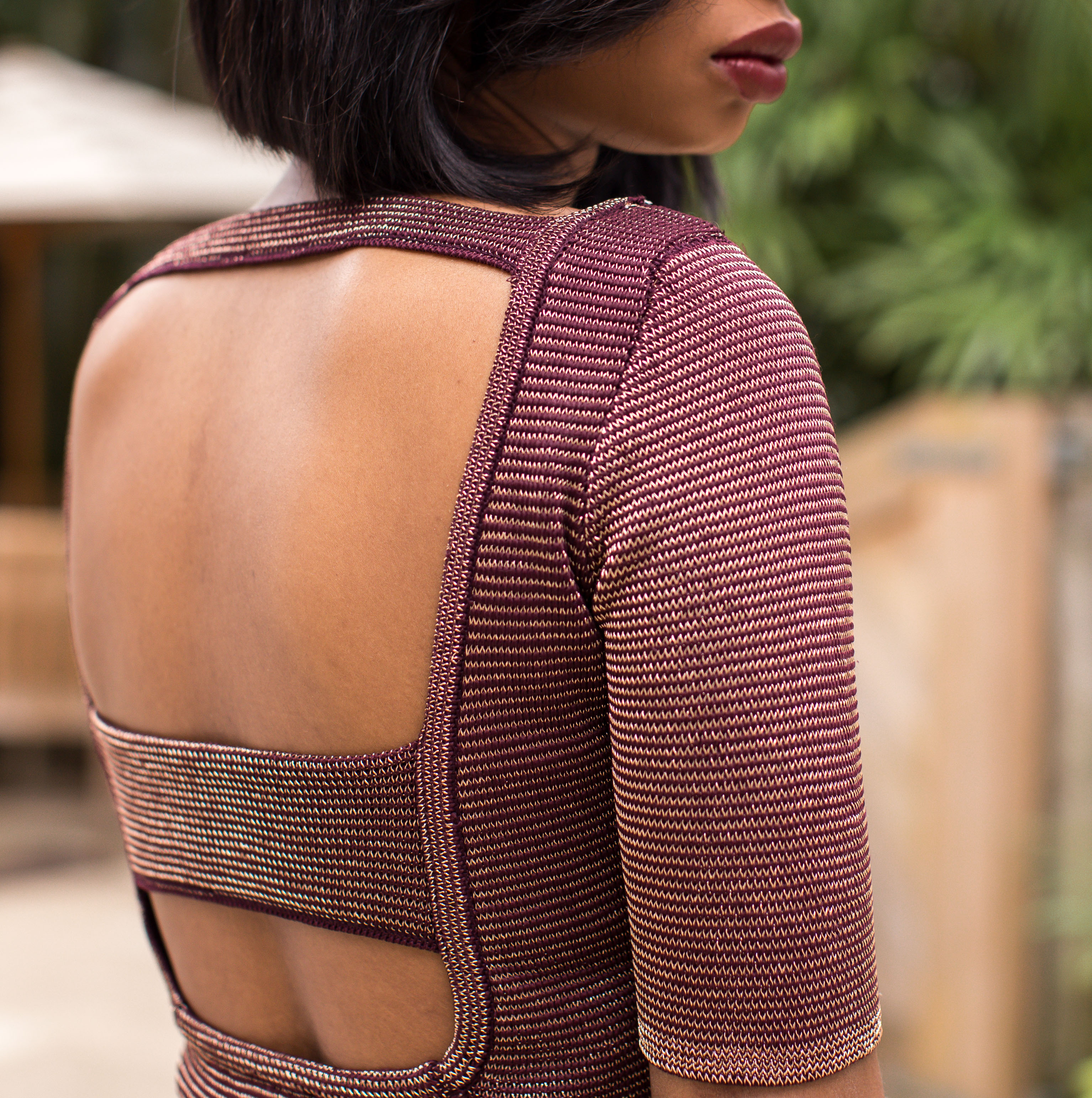 Seeing as though the dinner was in an intimate setting I did not want to be over dressed. I contemplated this dress at first because of the color and the fabric. I felt that the maroon was too dark and the material was too thick for spring. But once I had it on and it hugged my curves (giving me a little booty) I had to say yes to the dress. It worked out perfectly though, because the birthday girl also had on maroon. Color coordinating heyyyyy…